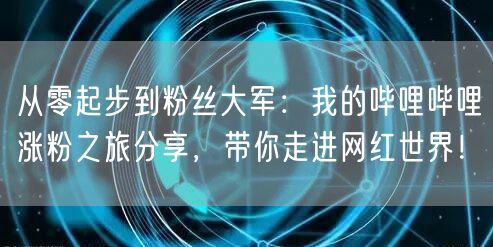 大家好,今天我想和大家分享我的哔哩哔哩涨粉之旅。从一个普通用户到拥有粉丝大军,我经历了许多挫折和尝试。在这个过程中,我深刻体会到了网红世界的魅力与挑战。希望我的经验能为大家带来一些启示和帮助。